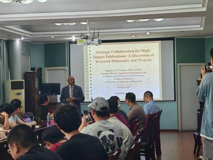 下午三点半,Jatinder (Jeet) N. D. Gupta教授在青山校区机械工程学院四楼会议室作题为“Strategic Collaboration for High-Impact Publications: Research Philosophy and Projects” 的学术报告,报告会由机械工程学院工业系统工程系唐秋华教授主持。